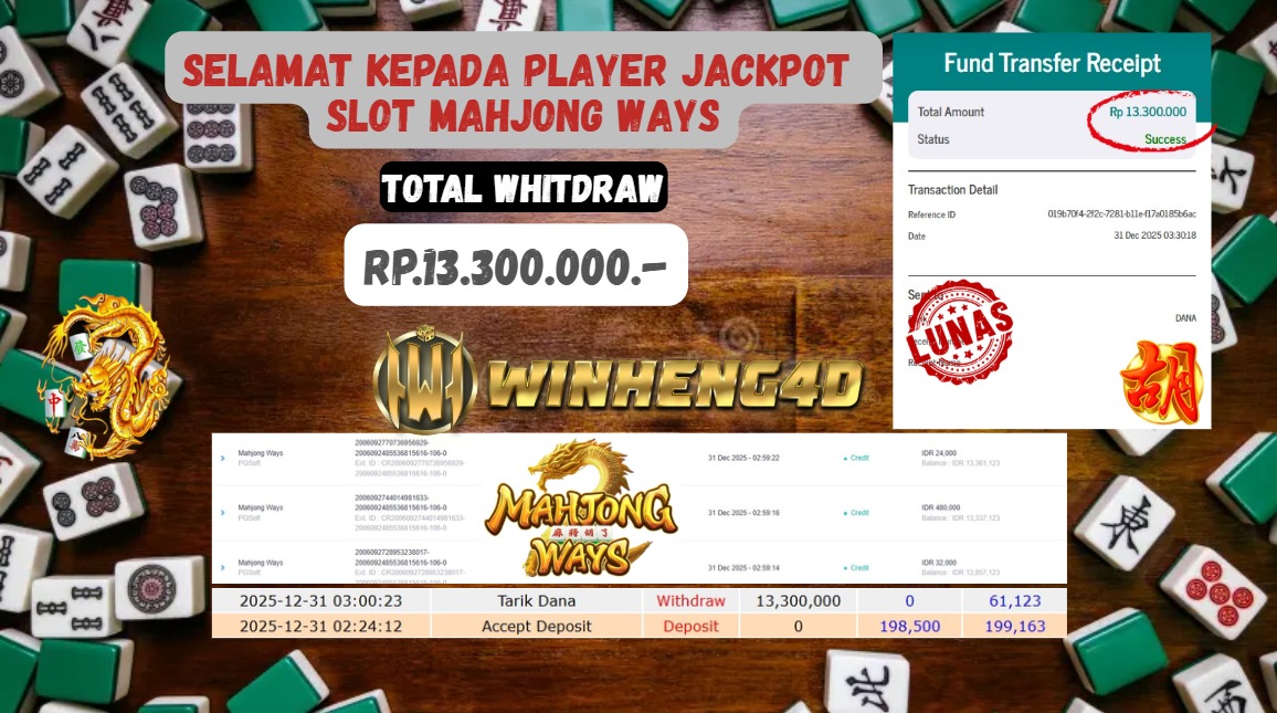 Selamat kepada User ID : R***38 Telah berhasil mendapatkan kemenangan besar pada Permainan JP SLOT MAHJONG WAYS Dengan kemenangan Sebesar … Baca selengkapnya...