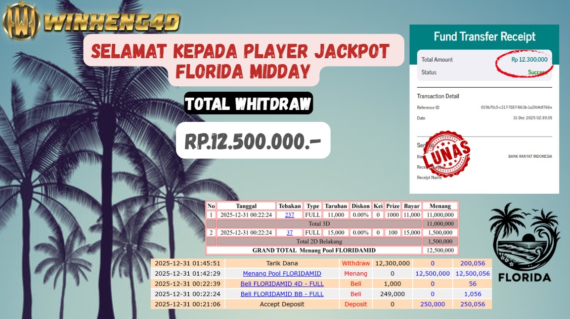 Selamat kepada User ID : PUR***LA01 Telah berhasil mendapatkan kemenangan besar pada Permainan JP TOGEL FLORIDA MIDDAY Dengan kemenangan Sebesar … Baca selengkapnya...