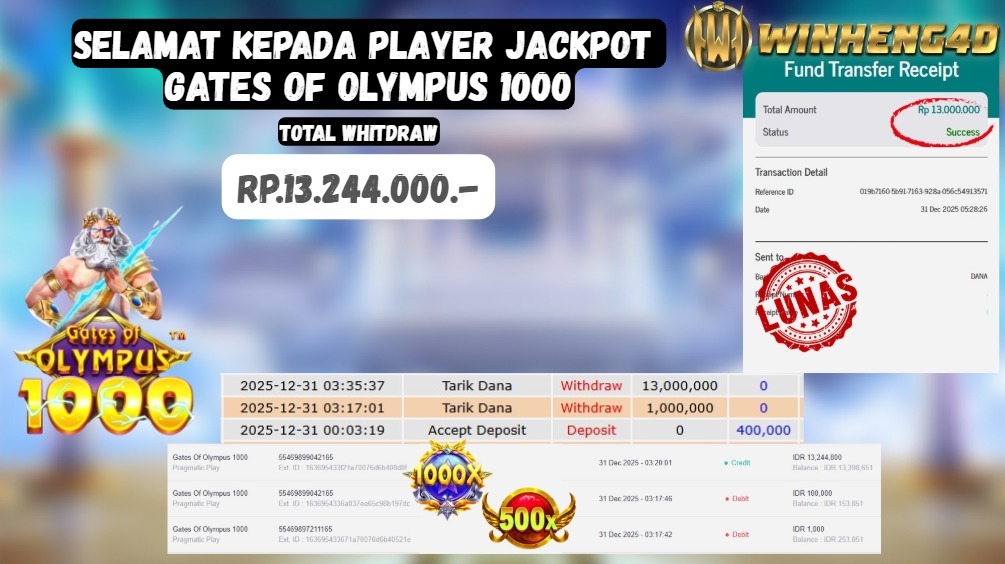 Selamat kepada User ID : IN***K Telah berhasil mendapatkan kemenangan besar pada Permainan JP SLOT GATES OF OLYMPUS 1000 Dengan … Baca selengkapnya...