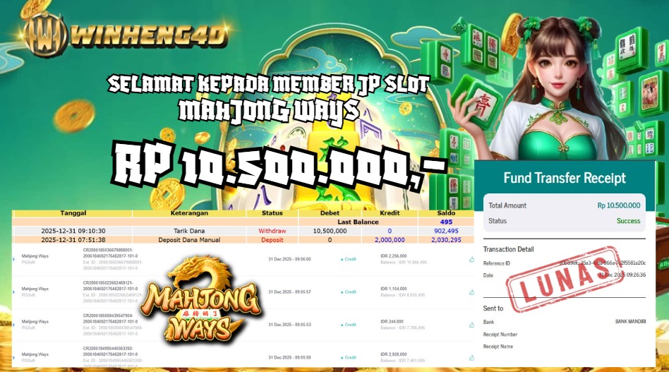 Selamat kepada User ID : R***38 Telah berhasil mendapatkan kemenangan besar pada Permainan JP SLOT MAHJONG WAYS Dengan kemenangan Sebesar … Baca selengkapnya...