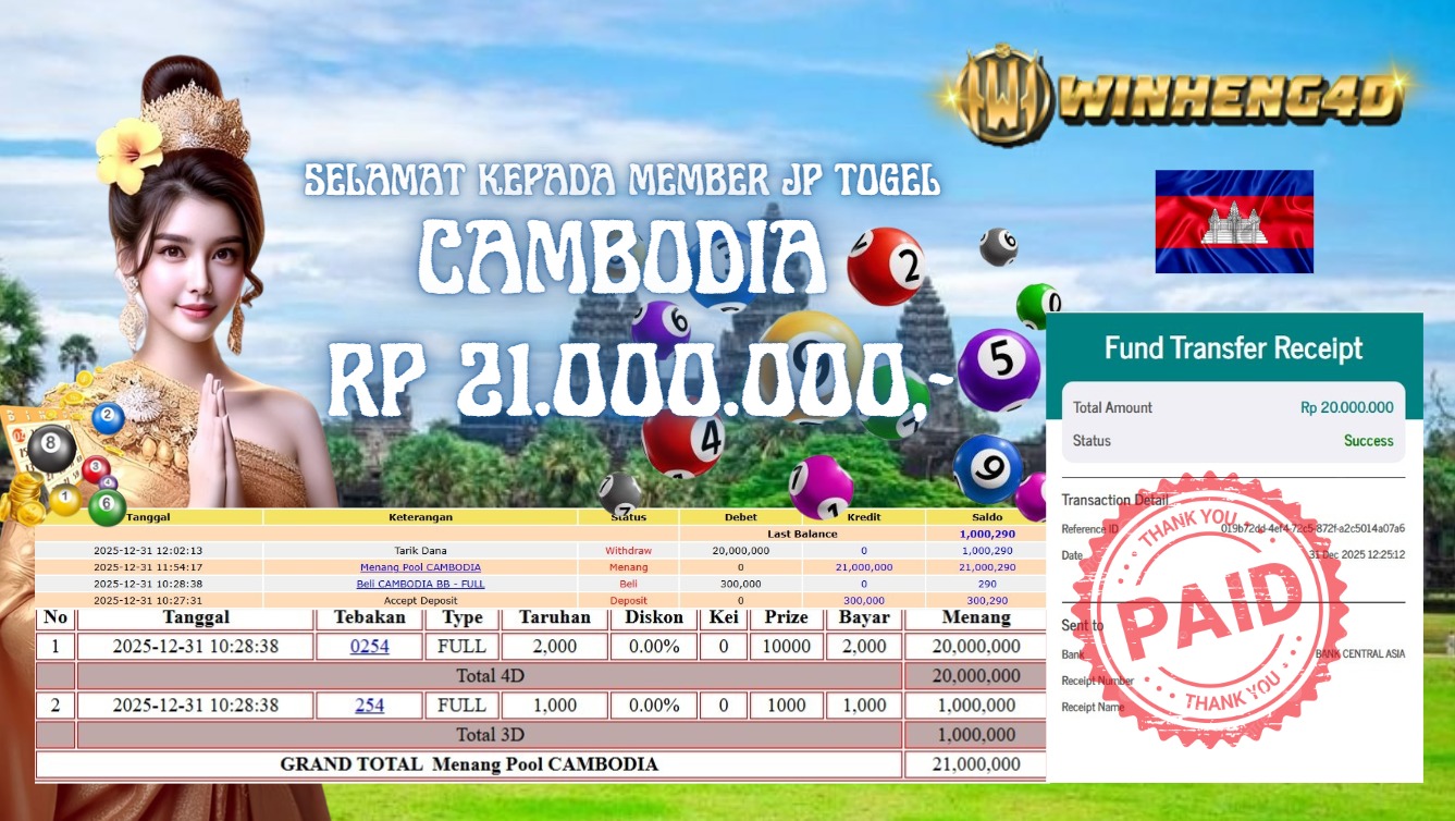 Selamat kepada User ID : KOR***JE44 Telah berhasil mendapatkan kemenangan besar pada Permainan JP TOGEL CAMBODIA Dengan kemenangan Sebesar Rp … Baca selengkapnya...