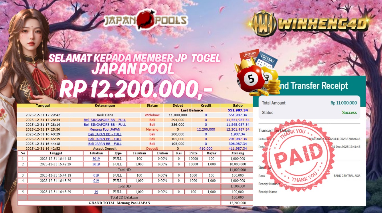 SELAMAT KEPADA MEMBER JP TOGEL JAPAN Rp 12.200.000,- LUNAS