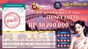 Selamat kepada User ID : AJU***I99 Telah berhasil mendapatkan kemenangan besar pada Permainan JP TOGEL SYDNEY LOTTO Dengan kemenangan Sebesar … Baca selengkapnya...