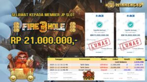 Selamat kepada User ID : HO***SN9 Telah berhasil mendapatkan kemenangan besar pada Permainan JP SLOT FIRE IN THE HOLE 3 Dengan kemenangan Sebesar Rp 21.000.000,- Setelah mengisi formulir withdraw dengan kurung waktu hanya 5-10 menit pihak WINHENG4D sudah melakukan transfer kepada pemilik User ID dan dana sudah dapat di cairkan oleh pemenang. Bukti pembayaran yang kami berikan merupakan bukti pembayaran yang SAH / VALID yang langung di dapatkan melaui tanda transfer transaksi dari Bank yang di tuju.