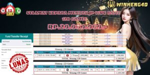Selamat kepada User ID : ARY***NO Telah berhasil mendapatkan kemenangan besar pada Permainan JP LIVE GAME 12D Dengan kemenangan Sebesar Rp 20.000.000,- Setelah mengisi formulir withdraw dengan kurung waktu hanya 5-10 menit pihak WINHENG4D sudah melakukan transfer kepada pemilik User ID dan dana sudah dapat di cairkan oleh pemenang. Bukti pembayaran yang kami berikan merupakan bukti pembayaran yang SAH / VALID yang langung di dapatkan melaui tanda transfer transaksi dari Bank yang di tuju.