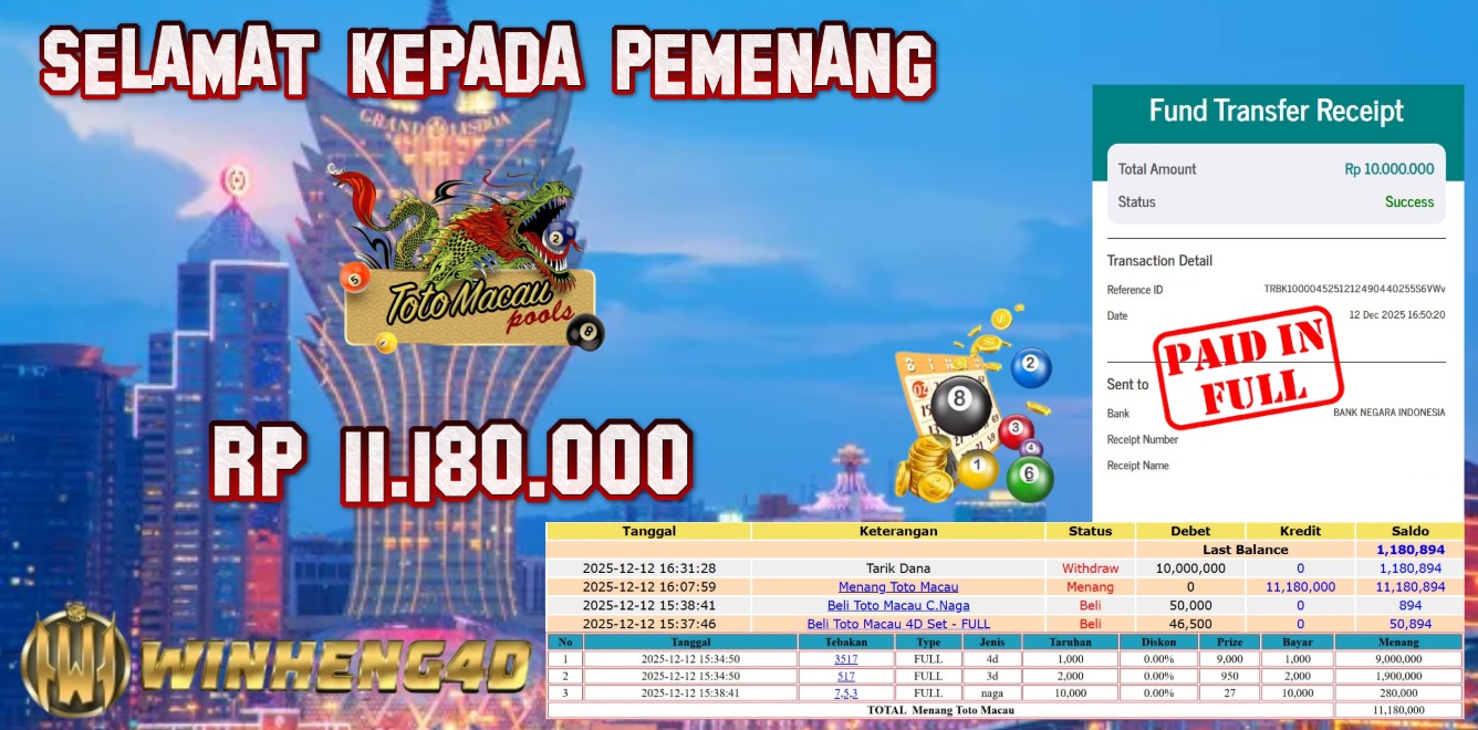 SELAMAT KEPADA MEMBER JP TOGEL TOTOMACAU Rp 10.925.000,- LUNAS