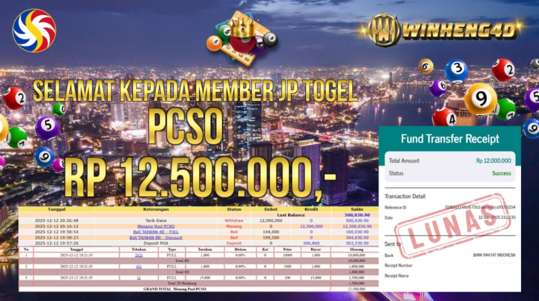 Selamat kepada User ID : VERK***NS4 Telah berhasil mendapatkan kemenangan besar pada Permainan JP TOGEL PCSO Dengan kemenangan Sebesar Rp … Baca selengkapnya...