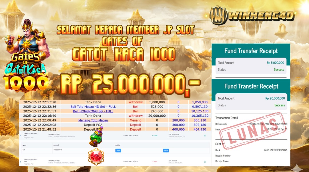 Selamat kepada User ID : CAF***E85 Telah berhasil mendapatkan kemenangan besar pada Permainan JP SLOT GATES OF GATOT KACA 1000 … Baca selengkapnya...