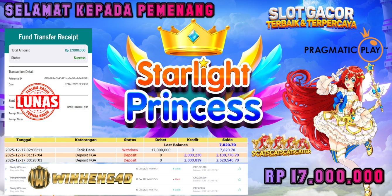 Selamat kepada User ID : HOSS***N7 Telah berhasil mendapatkan kemenangan besar pada Permainan JP SLOT STARLIGHT PRINCESS Dengan kemenangan … Baca selengkapnya...