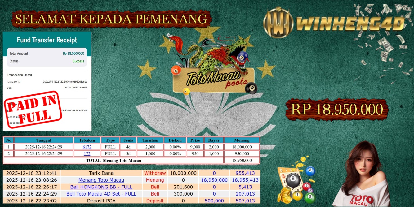 Selamat kepada User ID : RASH***14 Telah berhasil mendapatkan kemenangan besar pada Permainan JP TOGEL TOTO MACAU Dengan kemenangan … Baca selengkapnya...