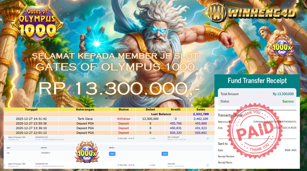 Selamat kepada User ID : BER***YA Telah berhasil mendapatkan kemenangan besar pada Permainan JP SLOT GATES OF OLYMPUS 1000 Dengan … Baca selengkapnya...