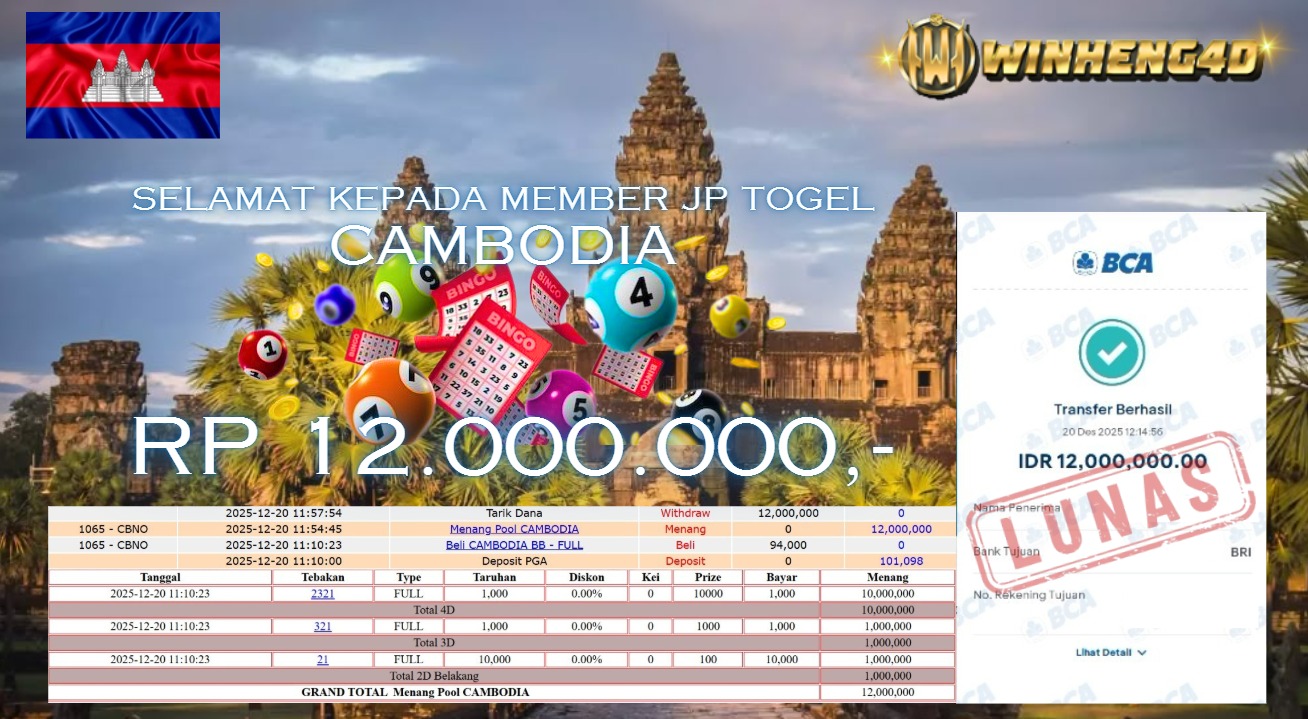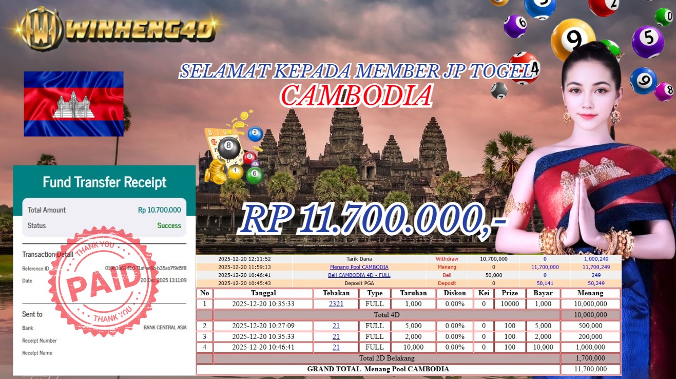 Selamat kepada User ID : FLO***WE Telah berhasil mendapatkan kemenangan besar pada Permainan JP TOGEL CAMBODIA Dengan kemenangan Sebesar Rp … Baca selengkapnya...