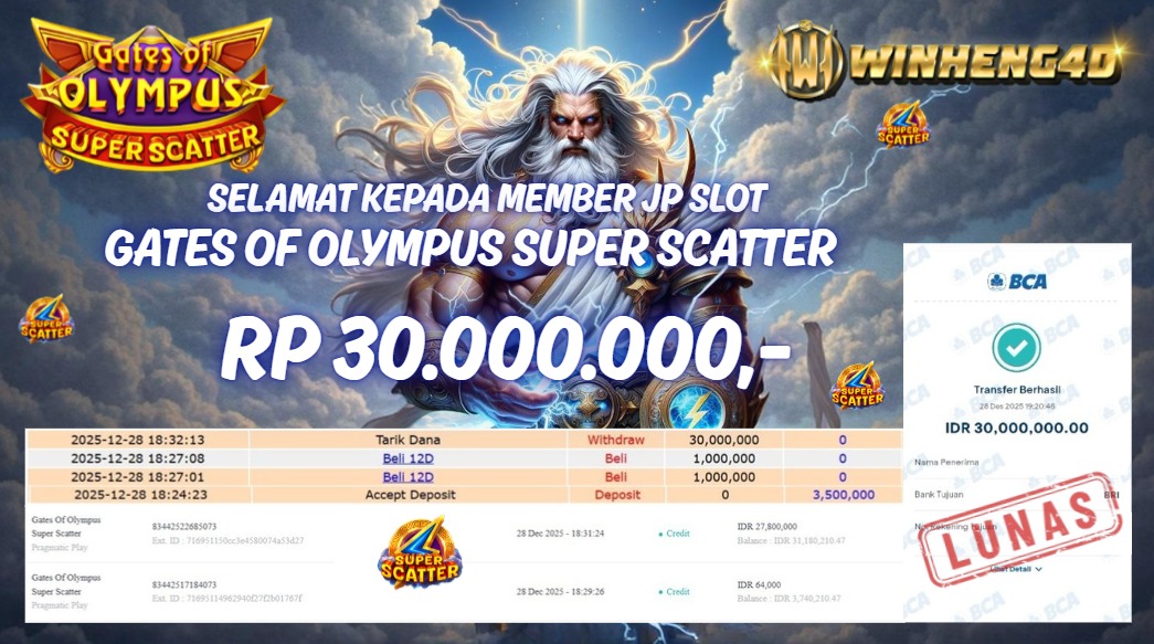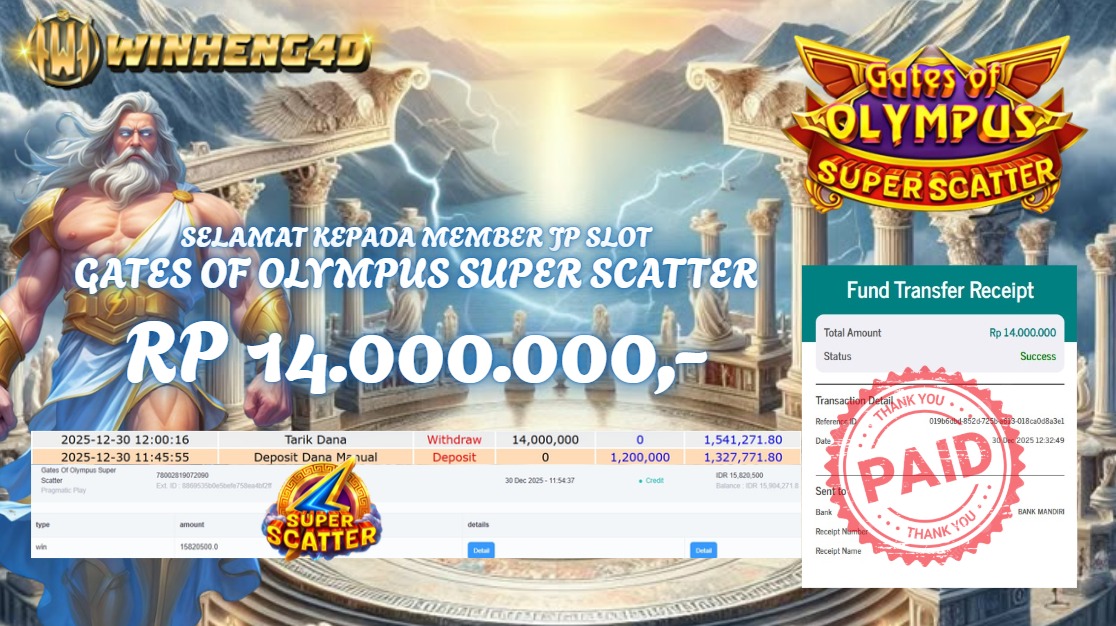 SELAMAT KEPADA MEMBER JP SLOT GATES OF OLYMPUS SUPER SCATTER Rp 14.000.000,- LUNAS