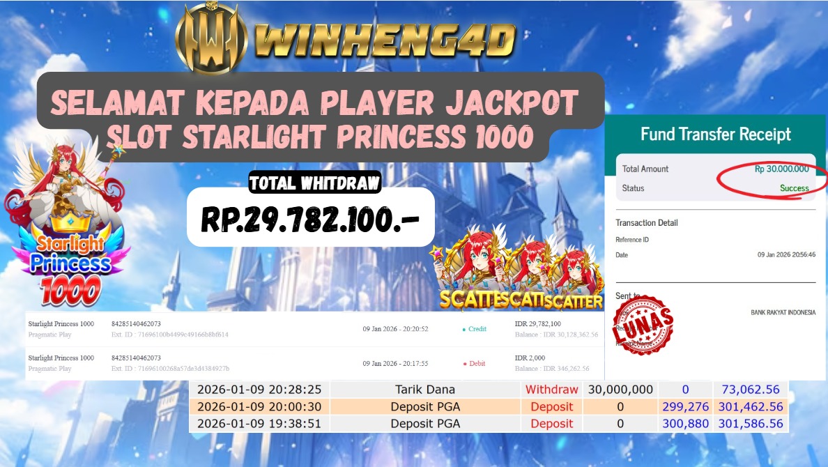 Selamat kepada User ID : JER***U Telah berhasil mendapatkan kemenangan besar pada Permainan JP SLOT STARLIGHT PRINCESS 1000 Dengan kemenangan … Baca selengkapnya...