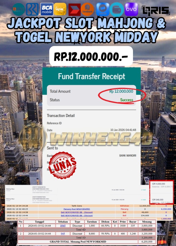 Selamat kepada User ID : JEM***K Telah berhasil mendapatkan kemenangan besar pada Permainan JP SLOT MAHJONG WAYS & TOGEL NEWYORK … Baca selengkapnya...