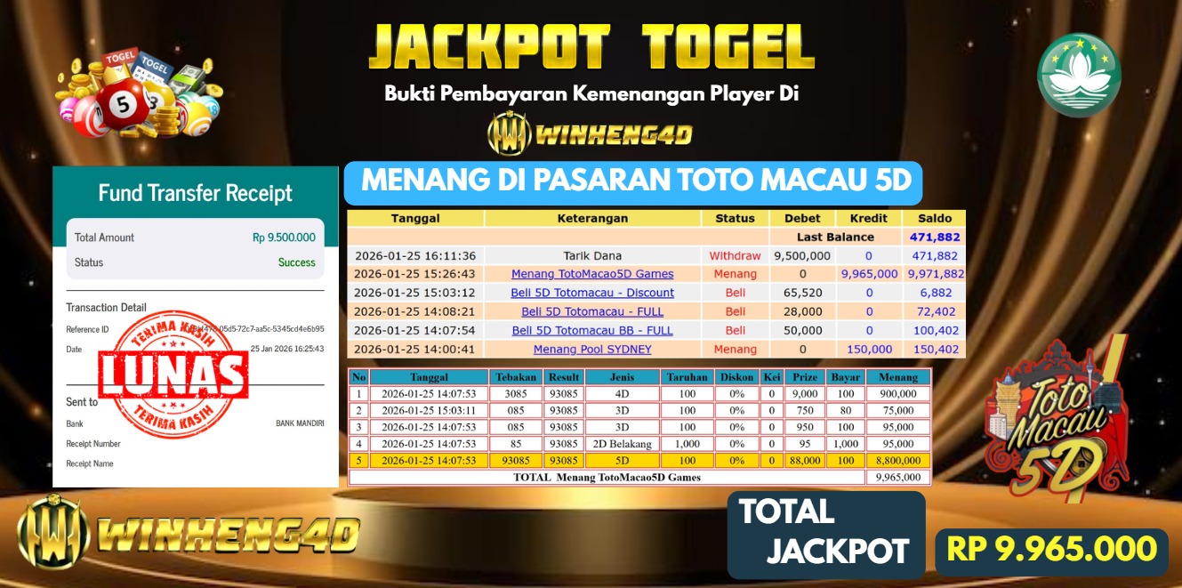 Selamat kepada User ID : MES***10 Telah berhasil mendapatkan kemenangan besar pada Permainan JP TOGEL CAMBODIA Dengan kemenangan Sebesar Rp … Baca selengkapnya...