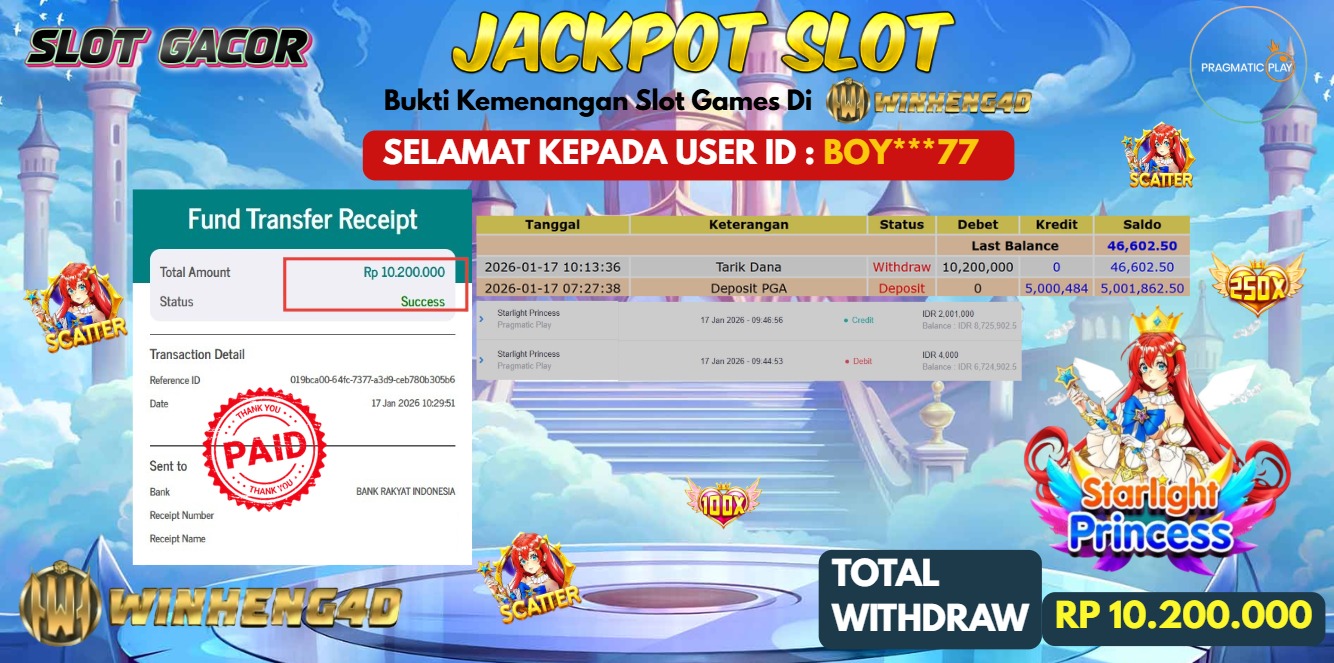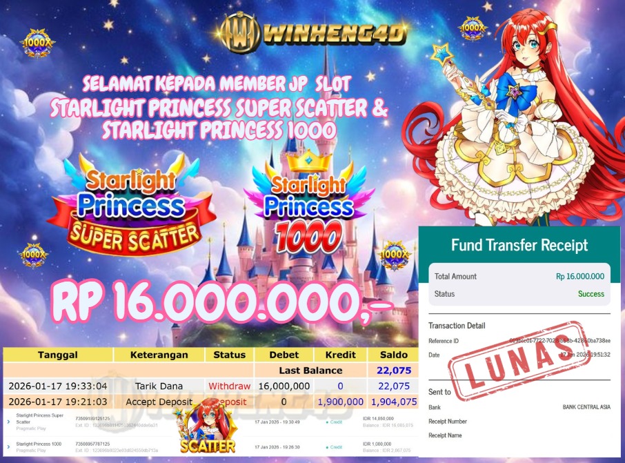 Selamat kepada User ID : BOY***77 Telah berhasil mendapatkan kemenangan besar pada Permainan JP SLOT STARLIGHT PRINCESS Dengan kemenangan Sebesar … Baca selengkapnya...