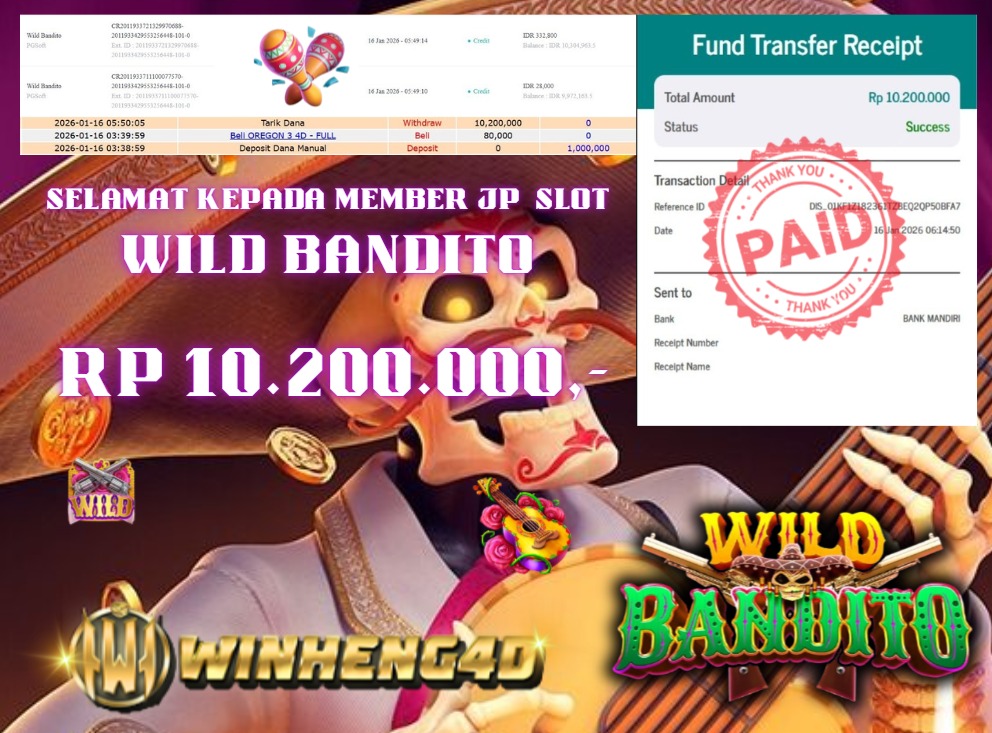 Selamat kepada User ID : HAE***AN60 Telah berhasil mendapatkan kemenangan besar pada Permainan JP SLOT WILD BANDITO Dengan kemenangan Sebesar … Baca selengkapnya...
