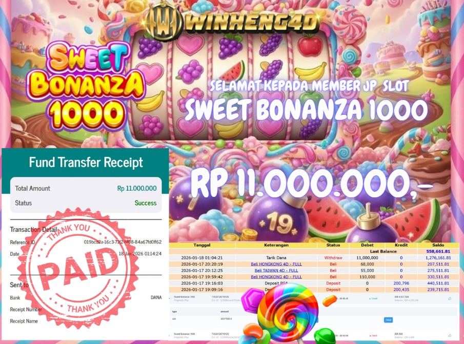 Selamat kepada User ID : ELZ***RD Telah berhasil mendapatkan kemenangan besar pada Permainan JP SLOT SWEET BONANZA 1000 Dengan kemenangan … Baca selengkapnya...