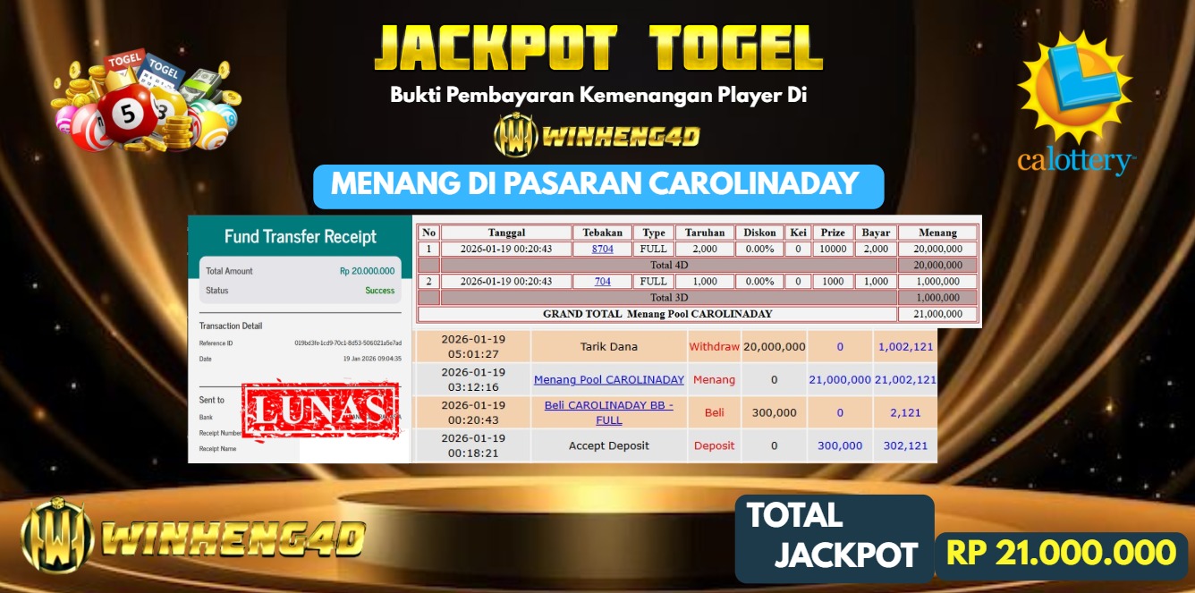 SELAMAT KEPADA MEMBER JP TOGEL CAROLINADAY Rp 21.000.000,- LUNAS