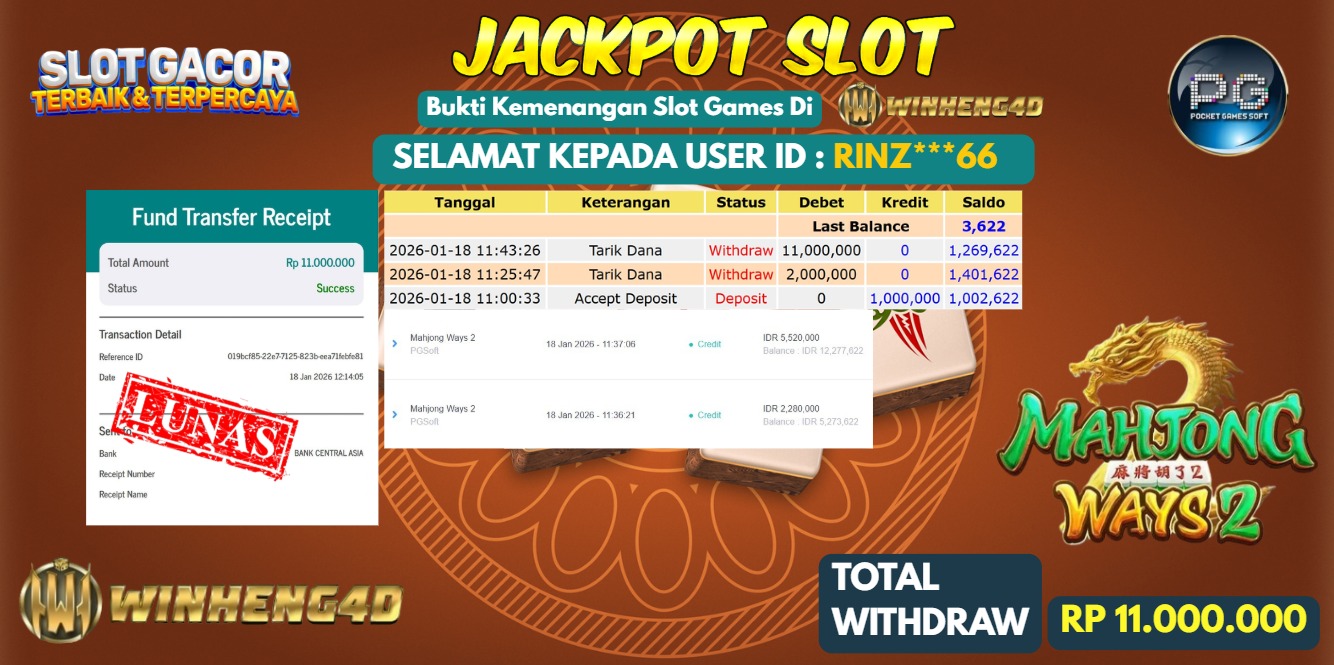 Selamat kepada User ID : RINZ***66 Telah berhasil mendapatkan kemenangan besar pada Permainan JP SLOT MAHJONG WAYS 2 Dengan kemenangan … Baca selengkapnya...