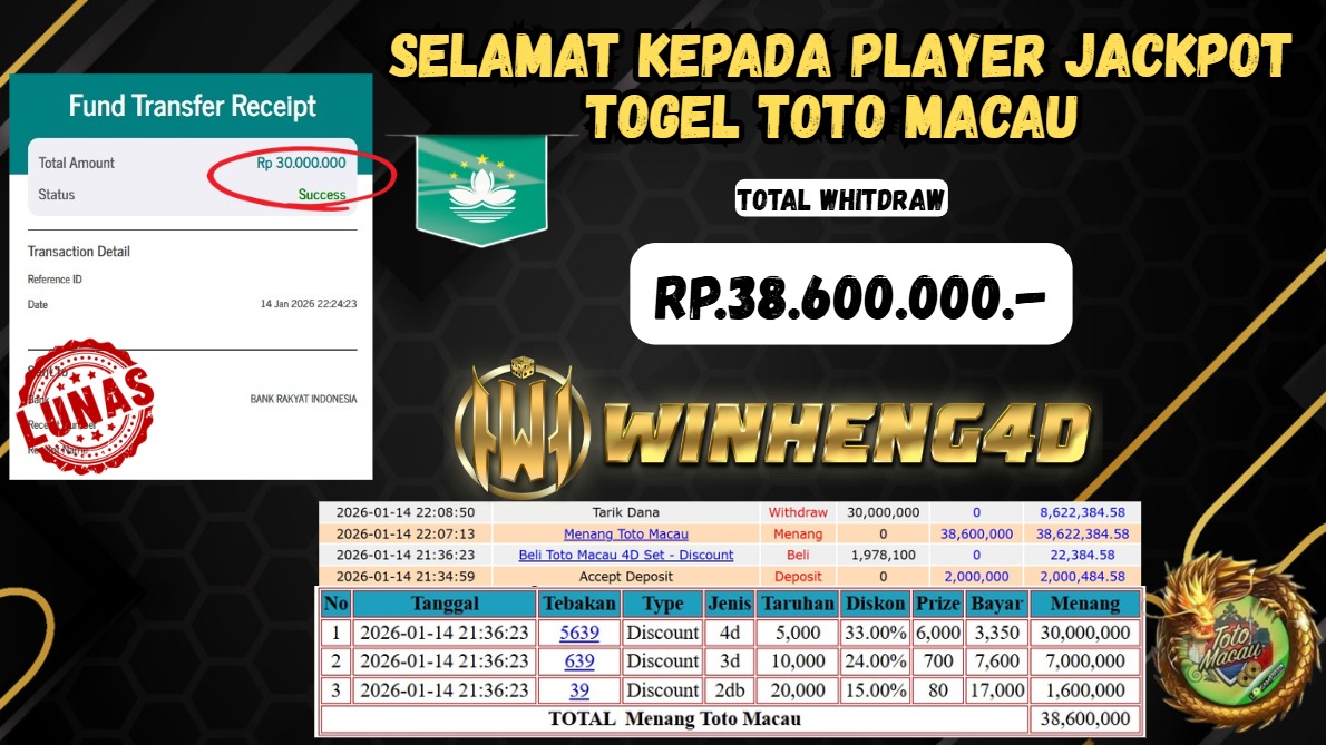 Selamat kepada User ID : JA***I Telah berhasil mendapatkan kemenangan besar pada Permainan JP TOGEL TOTO MACAU Dengan kemenangan Sebesar … Baca selengkapnya...