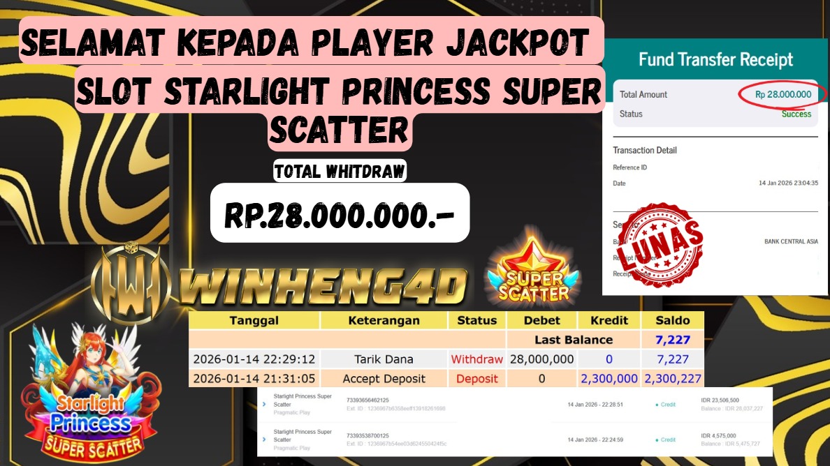 Selamat kepada User ID : KO***A9 Telah berhasil mendapatkan kemenangan besar pada Permainan JP SLOT STARLIGHT PRINCESS SUPER SCATTER Dengan … Baca selengkapnya...