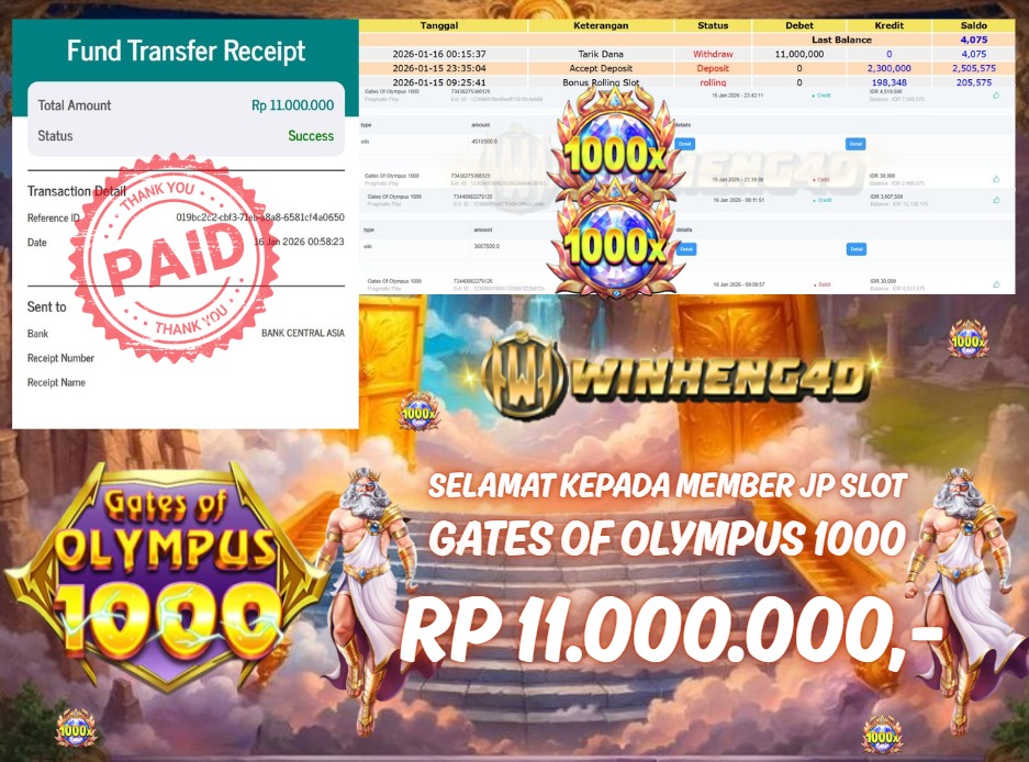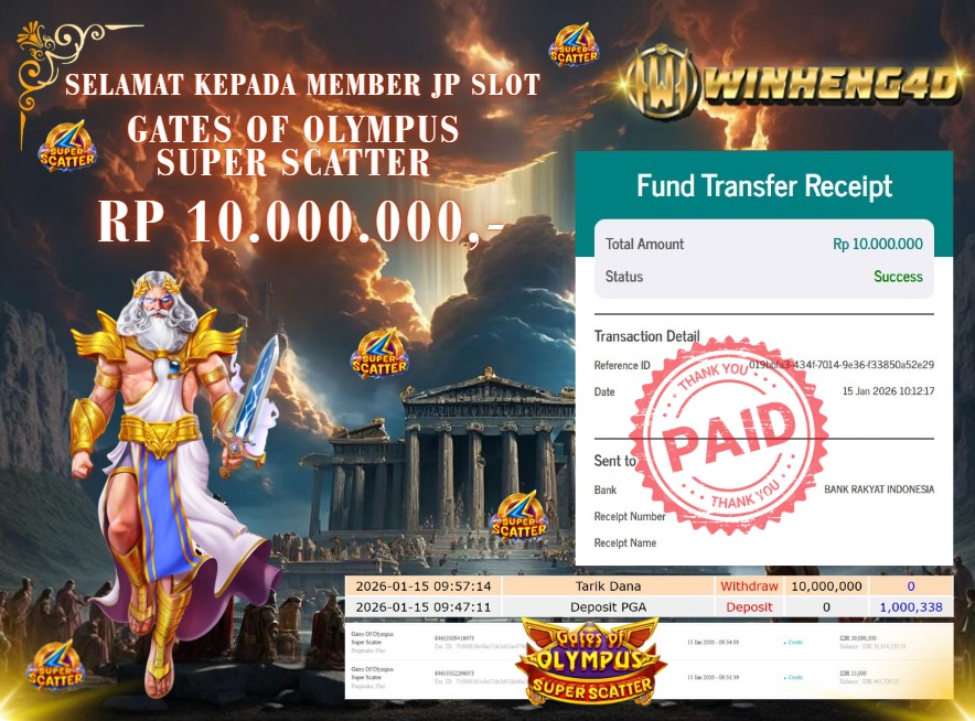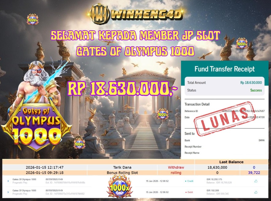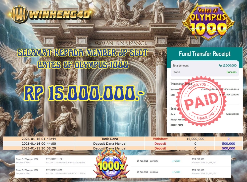 SELAMAT KEPADA MEMBER JP SLOT GATES OF OLYMPUS 1000 Rp 15.000.000,- LUNAS