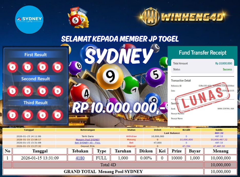 Selamat kepada User ID : MAE***D5 Telah berhasil mendapatkan kemenangan besar pada Permainan JP TOGEL SYDNEY Dengan kemenangan Sebesar Rp … Baca selengkapnya...