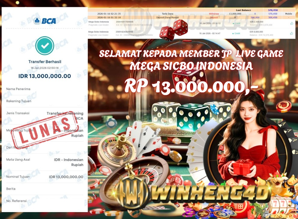 Selamat kepada User ID : DWE***D Telah berhasil mendapatkan kemenangan besar pada Permainan JP LIVE GAME MEGA SICBO INDONESIA Dengan … Baca selengkapnya...