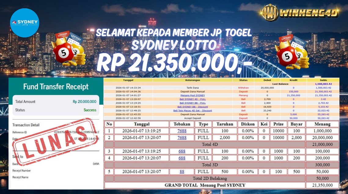 Selamat kepada User ID : DEV**888 Telah berhasil mendapatkan kemenangan besar pada Permainan JP TOGEL SYDNEY LOTTO Dengan kemenangan Sebesar … Baca selengkapnya...