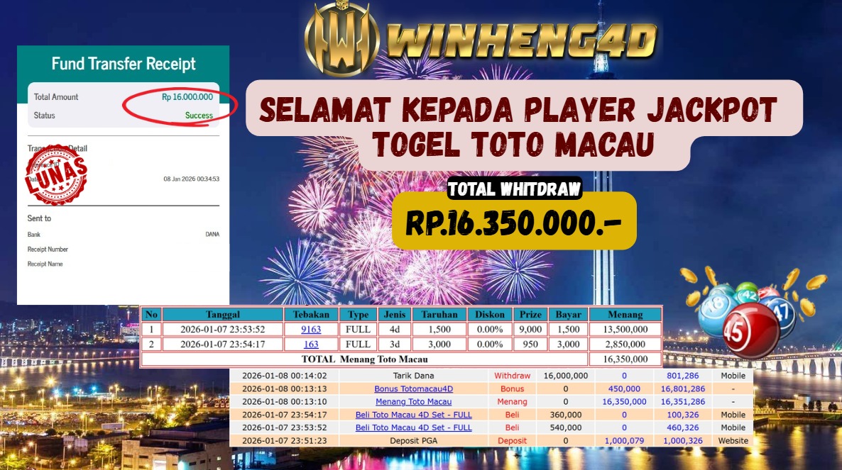 Selamat kepada User ID : RAK***A Telah berhasil mendapatkan kemenangan besar pada Permainan JP TOGEL TOTO MACAU Dengan kemenangan Sebesar … Baca selengkapnya...