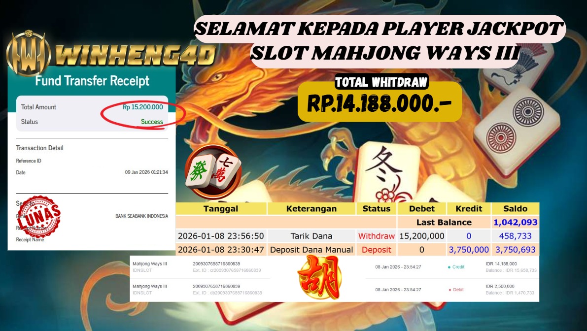 Selamat kepada User ID : ER***DE Telah berhasil mendapatkan kemenangan besar pada Permainan JP SLOT MAHJONG WAYS Dengan kemenangan Sebesar … Baca selengkapnya...