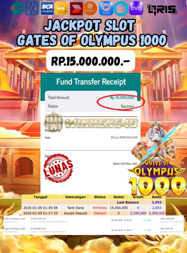 Selamat kepada User ID : KA***T Telah berhasil mendapatkan kemenangan besar pada Permainan JP SLOT GATES OF OLYMPUS 1000 Dengan … Baca selengkapnya...