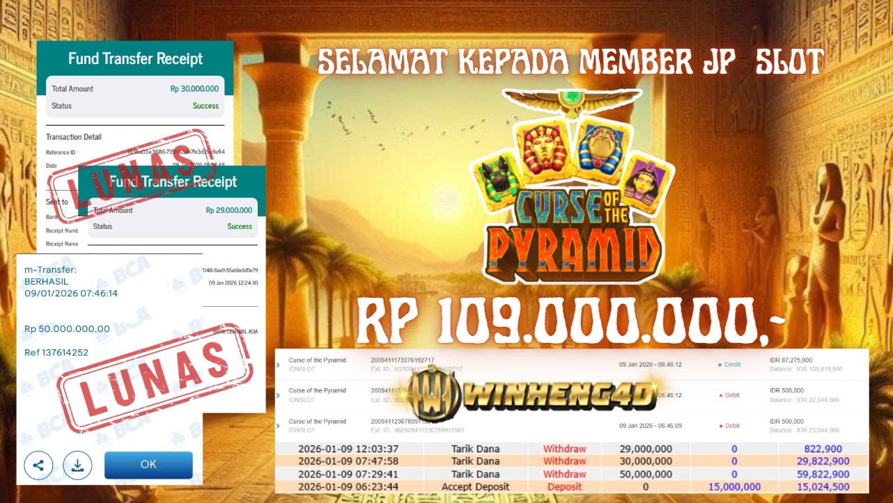 SELAMAT KEPADA MEMBER JP SLOT CURSE OF THE PYRAMID Rp 79.000.000,- LUNAS