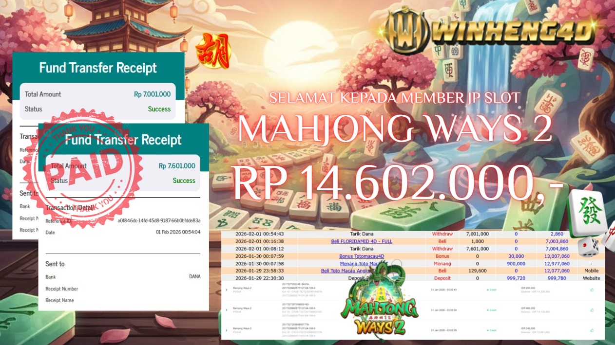 Selamat kepada User ID : RON***EY Telah berhasil mendapatkan kemenangan besar pada Permainan JP SLOT MAHJONG WAYS 2 Dengan kemenangan … Baca selengkapnya...