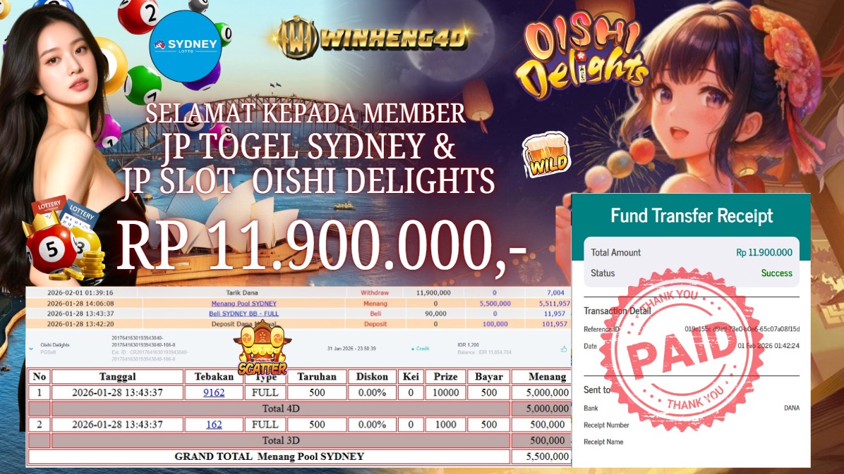 Selamat kepada User ID : LOU***EN Telah berhasil mendapatkan kemenangan besar pada Permainan JP TOGEL SYDNEY & JP SLOT OISHI … Baca selengkapnya...