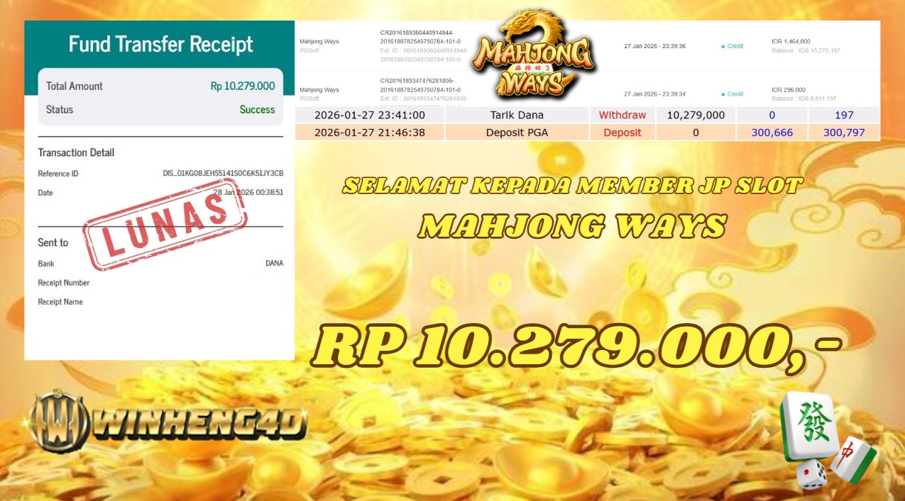 SELAMAT KEPADA MEMBER JP SLOT MAHJONG WAYS Rp 17.000.000,- LUNAS