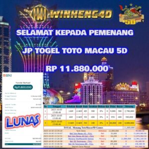 SELAMAT KEPADA MEMBER JP TOGEL TOTO MACAU 5D TOTAL Rp. 13.125.000.- LUNAS